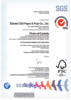 We provide "one-stop"comprehensive supply chain services of forest,pulp and paper to global customers for ordering, transportation, insurance, warehousing, disutribution and financing. And we have obtained FSC-COC certificate.