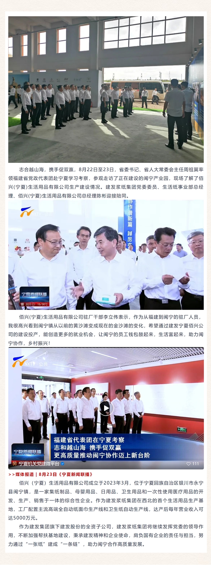 福建省党政代表团考察闽宁产业园,了解佰兴(宁夏)生活用品有限公司生产建设情况